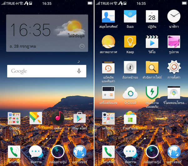 มากันที่หน้า Homescreen กันบ้าง โดยจะเป็นหน้ารวมแอปพลิเคชันทั้งหมดที่มีในตัวเครื่อง ไม่มีหน้า App Drawer ครับ