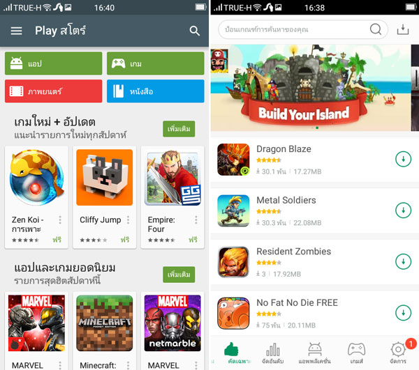 สำหรับการดาวน์โหลดแอปพลิเคชันใหม่ๆ นอกจากจะมี Play Store แล้ว ยังมีแอปพลิเคชันที่มีชื่อว่า ร้านค้าแอป รวบรวมแอปพลิเคชันที่น่าสนใจให้ดาวน์โหลดกัน