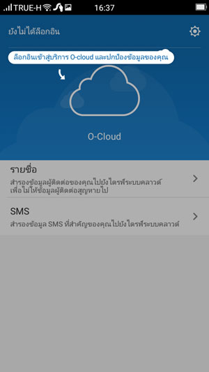 O-Cloud แอปพลิเคชันสำรองข้อมูลผ่านทางระบบ Cloud ซึ่งสามารถสำรองได้ทั้ง รายชื่อผู้ติดต่อ และ SMS