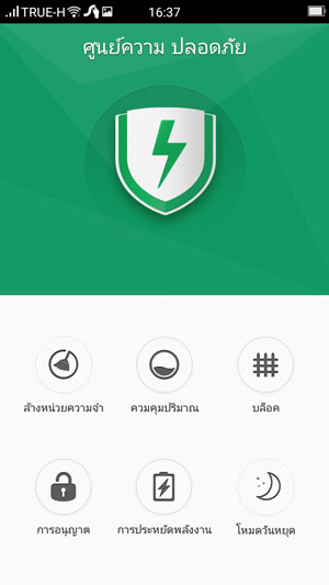 ศูนย์ความปลอดภัย เป็นแอปพลิเคชันด้านความปลอดภัยบนตัวเครื่อง ไม่ว่าจะเป็น ล้างหน่วยความจำ, ควบคุมปริมาณ นอกจากนี้ ยังมี โหมดวันหยุด และบล็อก สำหรับบล็อกเบอร์แปลก, เบอร์ขายประกัน หรือบล็อกข้อความขยะที่ไม่ต้องการได้
