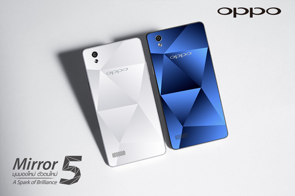 เป็นอย่างไรกันบ้างครับ กับ OPPO Mirror 5 สมาร์ทโฟนที่ดีไซน์สวยที่สุดในบรรดามือถือ OPPO ทั้งหมด ด้วยดีไซน์ฝาหลังที่โดดเด่น ด้วยพื้นผิวด้านหลังตัวเครื่องถูกปิดผนึกด้วยกระจกคริสตัล พร้อมลวดลายแบบเพชร และเทคนิคการสะท้อนแสงอัลตราไวโอเล็ต ทำให้เกิดภาพนูนสวยงามไปอีกแบบ นอกเหนือจากด้านดีไซน์แล้ว OPPO Mirror 5 ยังมีคุณสมบัติอื่นๆ ที่น่าสนใจไม่แพ้กัน ไม่ว่าจะเป็น หน้าจอแสดงผลกว้าง 5 นิ้ว ความละเอียด 960 x 540 พิกเซล, หน่วยประมวลผลแบบ Quad-Core Processor ความเร็ว 1.2 GHz, หน่วยความจำ RAM ขนาด 2 GB, หน่วยความจำภายในตัวเครื่อง ขนาด 16 GB รองรับ microSD Card สูงสุด 128 GB, กล้องด้านหน้า ความละเอียด 5 ล้านพิกเซล, กล้องด้านหลัง ความละเอียด 8 ล้านพิกเซล พร้อมไฟแฟลชแบบ LED และรันระบบปฏิบัติการ Color OS 2.1 ซึ่งมีพื้นฐานอยู่บนระบบปฏิบัติการ Android 5.1 (Lollipop) นั่นเอง นอกจากนี้ ยังรองรับการใช้งาน 2 ซิมการ์ดภายในเครื่องเดียว และรองรับเครือข่าย 4G LTE เรียกได้ว่า รองรับการใช้งานด้านพื้นฐานได้อย่างสบายๆ ส่วนใครที่การถ่ายรูปเซลฟี่ด้วยกล้องด้านหน้า ก็ถือว่า OPPO Mirror 5 รุ่นนี้ ทำได้ดีไม่แพ้กัน