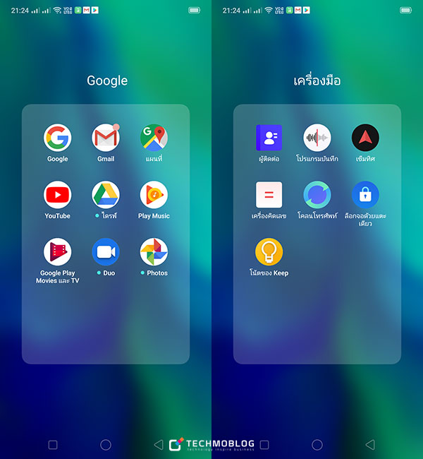 การกดค้างที่ไอคอนแอปพลิเคชัน จะปรากฏเมนูลัดขึ้นมา เพื่อให้สามารถใช้งานได้อย่างรวดเร็วยิ่งขึ้น