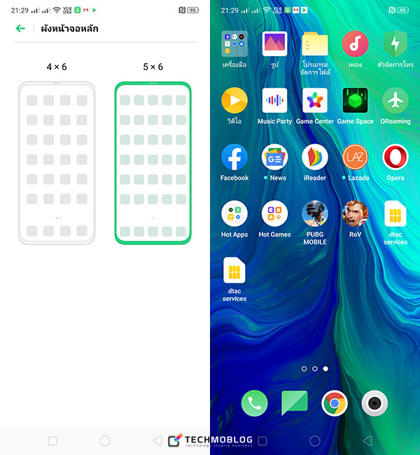 สามารถเลือกจัดเรียง Layout ได้ 2 รูปแบบ ได้แก่ 4x6 และ 5x6