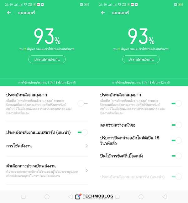 นอกจากนี้ ยังมาพร้อมกับโหมดประหยัดพลังงาน ซึ่งมีให้เลือกทั้งโหมดประหยัดพลังงานแบบสมาร์ท และโหมดประหยัดพลังงานสูงมาก
