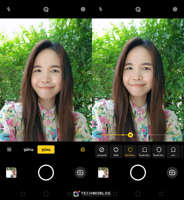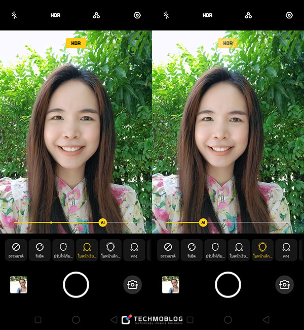 ตัวอย่างภาพถ่ายจากกล้องด้านหน้า โหมด AI Beauty ระดับ 50