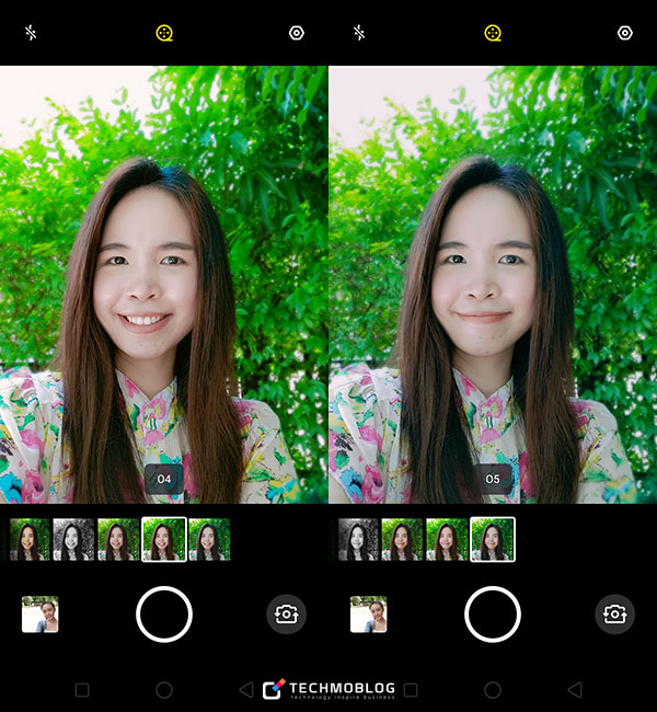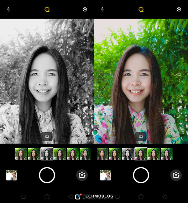 นอกจากนี้ในโหมด Portrait ยังมาพร้อมกับฟังก์ชัน Artistic Portrait กับการใส่ฟิลเตอร์ให้กับภาพถ่ายทั้งหมด 5 รูปแบบด้วยกัน ทำให้ได้ภาพในโทนสีต่าง ๆ โดยที่ไม่จำเป็นต้องดาวน์โหลดแอปฯ ปรับแต่งภาพมาใช้งานแต่อย่างใด