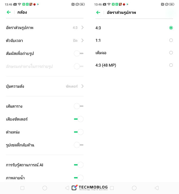 นอกจากนี้ ยังสามารถตั้งค่าถ่ายภาพในส่วนอื่น ๆ ได้ ไม่ว่าจะเป็น อัตราส่วนรูปภาพ, ตัวจับเวลา, เส้นตาราง, เสียงชัตเตอร์, AI รวมถึงเพิ่มลายน้ำ