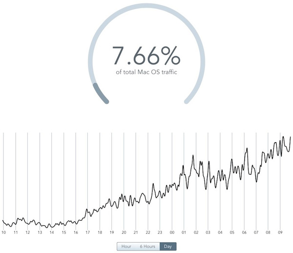 โดยเมื่อปีที่ผ่านมา ทาง Chitika ได้พบยอดทราฟฟิก Mac ของ OS X Mountain Lion อยู่ที่ 3% นั่นหมายความว่า OS X Mavericks มีการเติบโตที่รวดเร็วมาก ส่วนหนึ่งเป็นเพราะเปิดให้ดาวน์โหลดฟรีด้วยนั่นเอง