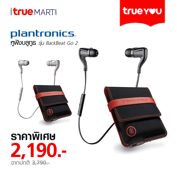 ลดเลย 1,600 บาท !! กับหูฟังบลูทูธ Plantronics BackBeat Go 2 หูฟังระบบสเตอริโอ มาพร้อมกับกระเป๋าชาร์จแบบพกพา พร้อมอิสระในการใช้งาน ด้วยเทคโนโลยีการเชื่อมต่อแบบไร้สายช่วยเพิ่มความสะดวกสบายในการใช้งานให้กับคุณ ราคาพิเศษ 2,190 บาท วันนี้ - 24 ก.พ. 2559