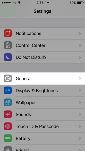 ขั้นแรก เข้าไปที่หน้า Settings แล้วเลือก General