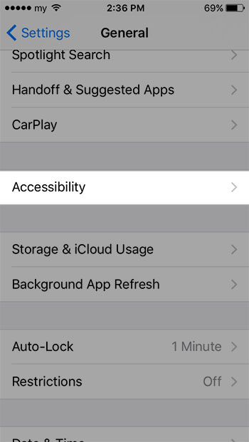 เข้าไปที่ Accessibility