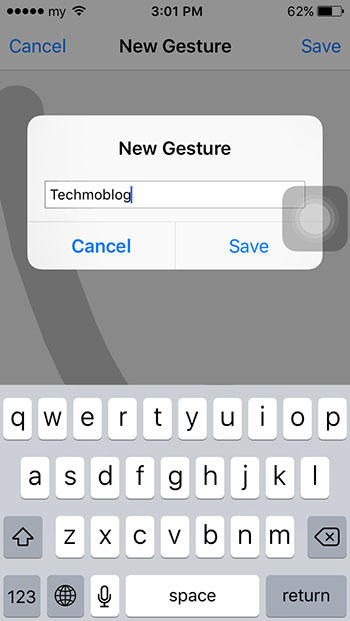 ตั้งชื่อปุ่มให้เรียบร้อย เพียงเท่านี้ท่าปาบอลของเราก็จะไปอยู่ในเมนู AssisitiveTouch > Custom พร้อมใช้งานแล้ว
