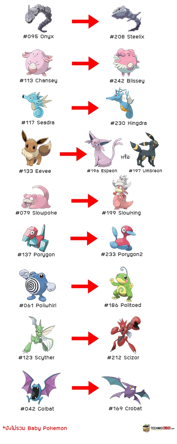 โปเกมอน Gen 1 ที่จะมีร่างพัฒนาเพิ่มเติมได้แก่:
