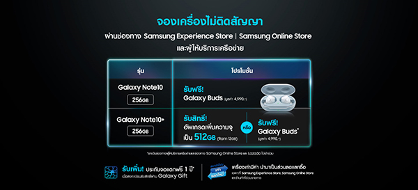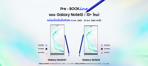 เหลือเวลาแค่ไม่กี่ชั่วโมง การสั่งจองซื้อล่วงหน้าของ Samsung galaxy note 10/10+ ก็จะสิ้นสุดลง ใน 23 ส.ค. นี้ ใครสนใจรีบๆ กันนิด เวลาเหลือไม่มากแล้ว กับโปรฯ สุดคุ้ม!!! เริ่มต้นเพียง 15,900 บาท พร้อมรับสิทธิ์ประกันจอแตกนาน 1 ปี เมื่อจองผ่านผู้ให้บริการเครือข่าย และสามารถเลือกเพิ่มความจุเป็น 512GB หรือเลือกรับหูฟังไร้สาย กาแลคซี่ บัดส์ มูลค่า 4,990 บาทฟรี พร้อมรับสิทธิ์ประกันจอแตกนาน 1 ปี เมื่อจองผ่านซัมซุงแบรนด์ช็อป เว็ปไซต์ Samsung.com และร้านค้าที่ร่วมรายการ ด่วน ถึงวันที่ 23 สิงหาคม 2562 เท่านั้น รายละเอียดและเงื่อนไขโปรโมชั่น สามารถดูได้ที่ www.samsung.com/th/note10/preorder