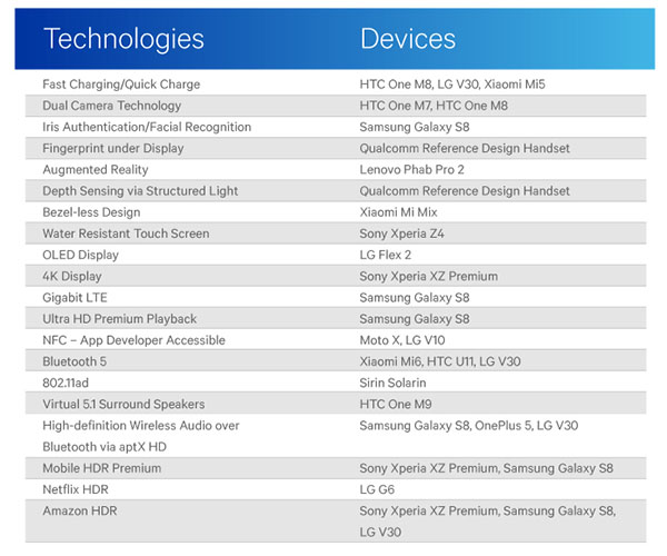 Qualcomm ผู้ผลิตชิปเซ็ตประมวลผลและผู้อยู่เบื้องหลังนวัตกรรมใหม่ๆ ในอุตสาหกรรมสมาร์ทโฟน ได้โพสต์รายการ "นวัตกรรมเจ้าแรกของโลก" ที่ตนมีส่วนร่วมขึ้นบนหน้าเว็บไซต์ ซึ่งมีตั้งแต่หน้าจอ OLED แบบชิดขอบ, Augmented Reality (AR), ระบสแกนใบหน้า และอื่นๆ อีกหลายรายการ ซึ่งดูแล้วก็ไม่น่าจะเป็นเรื่องแปลกอะไร หากนวัตกรรมส่วนใหญ่ทั้งหมดที่ Qualcomm ยกมานั้นไม่ได้เป็นฟีเจอร์ใหม่ของ iPhone X ที่กำลังจะเปิดตัวคืนนี้