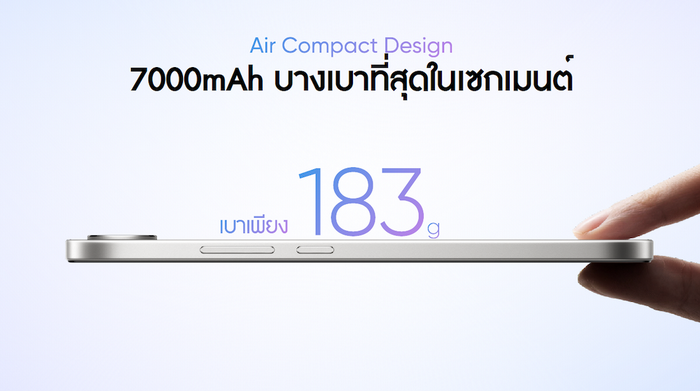 แท็บเล็ตแบบ Book-View ดีไซน์ขอบโค้งมน มอบตัวเครื่องเพรียวบางเพียง 6.6 มม. น้ำหนัก 578 กรัม จับถือง่ายไม่เมื่อยมือ และด้วยหน้าจอขนาดใหญ่ 11.61 นิ้ว ในอัตราส่วน 7:5 บนความละเอียด 2.8K จึงเหมาะทั้งสำหรับการอ่าน หรือแบ่งหน้าจอทำงานสองแอปพร้อมกัน พร้อมรีเฟรชเรต 120Hz และขับเคลื่อนด้วยชิป Dimensity 7300-Max ลื่นไหลทั้งทำงานเอกสาร ดูหนัง และเรียนออนไลน์ เสียงดังกระหึ่มสะใจด้วยลำโพง 4 ตัว (Quad Speakers) เสียงรอบทิศทาง แถมใช้ได้ยาวนานข้ามวันด้วยแบตเตอรี่ยักษ์ความจุ 12,200mAh และระบบชาร์จไว 45W รองรับ Reverse Charging 6.5W สามารถใช้ชาร์จอุปกรณ์อื่น ๆ ได้ในยามฉุกเฉิน นอกจากนี้ยังมีระบบสแกนลายนิ้วมือบนขอบข้าง และฟีเจอร์ Next AI ช่วยจดโน้ตทั้งในการทำงานและเสริมการเรียนรู้ได้อย่างก้าวกระโดด