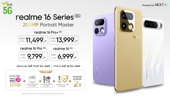 realme (เรียลมี) รุกตลาดมือถือระดับพรีเมียมไตรมาสแรกของปีด้วย “realme 16 Series 5G” ส่งสมาร์ตโฟนตัวท็อปลุยตลาดพร้อมกันถึง 3 รุ่น ทั้ง realme 16 Pro+ 5G, realme 16 Pro 5G และ realme 16 5G โดยชูจุดเด่นที่ไม่เหมือนใครด้วยระบบกล้อง 200MP LumaColor Portrait Master หนึ่งเดียวในเซกเมนต์ ที่จะพลิกโฉมวงการถ่ายภาพพอร์ตเทรตให้ก้าวล้ำยิ่งกว่าเดิม มอบภาพถ่ายที่สวยราวกับสตูดิโอมืออาชีพ พร้อมตัวเครื่องที่สวยล้ำแบบ Urban Wild Design ที่สร้างสรรค์ร่วมกับปรมาจารย์ด้านการออกแบบสไตล์มินิมัลระดับโลก “นาโอโตะ ฟุคาซาวะ” (Naoto Fukasawa) นำความพลิ้วไหวในธรรมชาติมาผสานเข้ากับความหรูหราของชีวิตชาวเมือง ถ่ายทอดลงบนสมาร์ตโฟนได้อย่างสวยงามลงตัว พร้อมประสิทธิภาพการทำงานรอบด้าน ตอบโจทย์ทั้งการทำงาน การพักผ่อน และกิจกรรมไลฟ์สไตล์ในหนึ่งเดียว