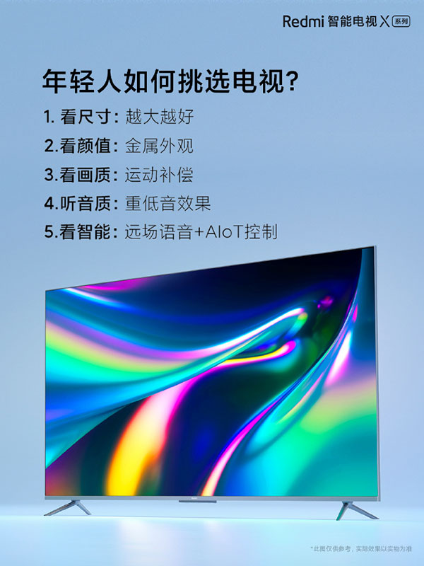 โดยสมาร์ททีวี Redmi Smart TV X Series ทั้ง 3 ขนาดหน้าจอนั้น มาพร้อมกับจอความละเอียดระดับ 4K รองรับการแสดงผล Wide Color Gamut ที่ 85% ตามมาตรฐานของ NTSC และมีอัตราส่วนหน้าจอต่อบอดี้ที่ 97% ส่วนกรอบตัวเครื่องเป็นแบบ Metal Frame