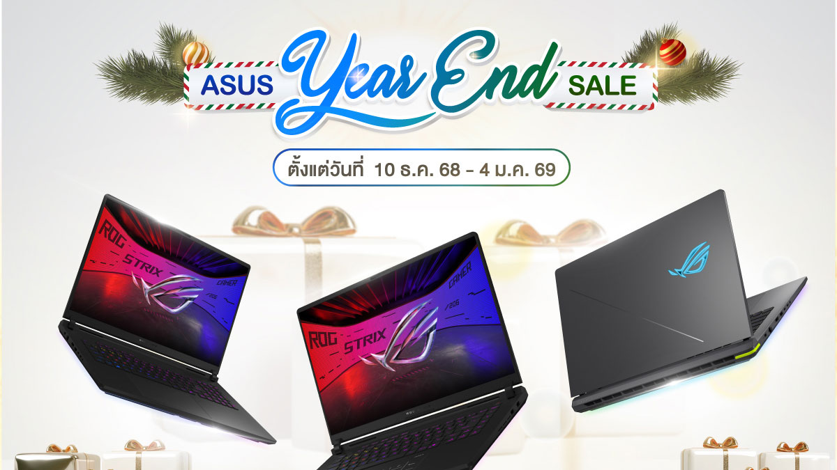 เอซุส ภายใต้แบรนด์รีพับบลิค ออฟ เกมเมอร์ส (ROG) จัดแคมเปญ “ASUS Year End Sale” สำหรับสินค้าเกมมิ่งโน้ตบุ๊ก ROG จำนวน 3 รุ่น ดังนี้