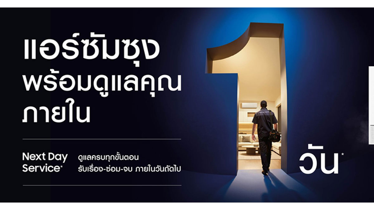 ซัมซุง ยกระดับมาตรฐานการดูแลเครื่องปรับอากาศรับฤดูร้อน ชูบริการ Next Day Service ที่ดูแลครบทุกขั้นตอน ตั้งแต่รับเรื่อง ซ่อม จบภายในวันถัดไป ให้ลูกค้ามั่นใจได้ว่าทุกปัญหาจะได้รับการดูแลอย่างรวดเร็ว โดยครอบคลุมในพื้นที่กรุงเทพฯ และปริมณฑล