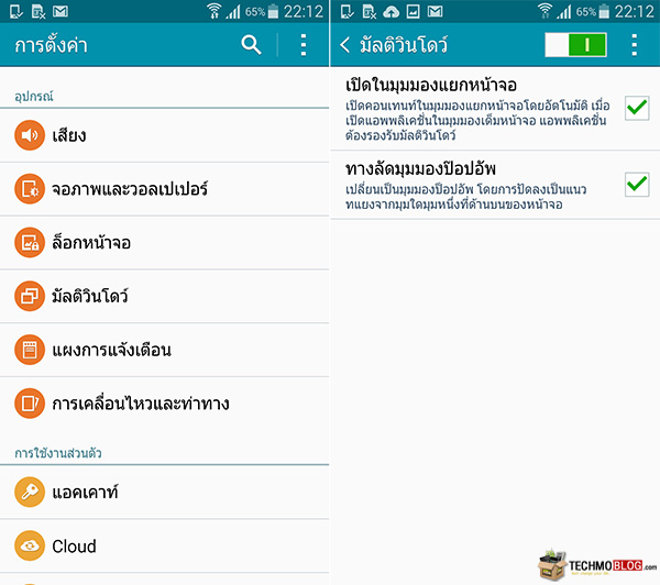 ก่อนใช้งาน Multi Window เราจะต้องเปิดใช้งานเสียก่อน โดยเข้าไปที่ การตั้งค่า (Settings) > มัลติวินโดว์ (Multi Window) และเปิดใช้งานที่ปุ่มด้านบน