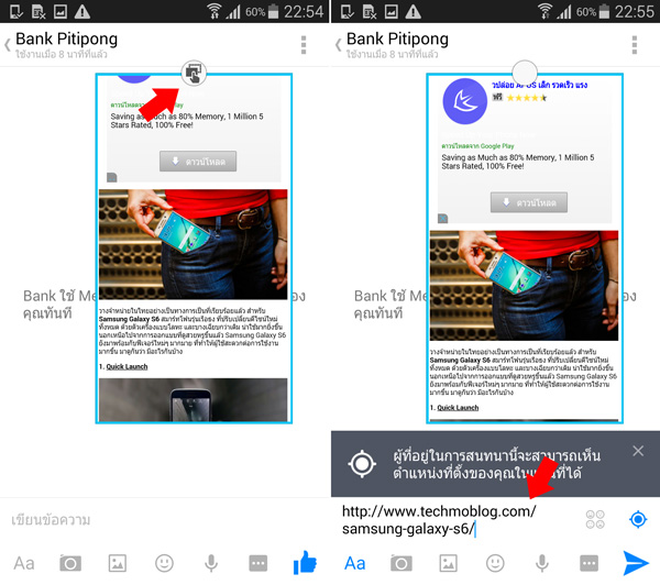 สำหรับตัวอย่างความสามารถอย่างแรกของฟังก์ชัน Multi Window ที่ผู้ใช้หลายๆ คน ต้องใช้กันอย่างแน่นอน นั่นก็คือ ฟีเจอร์ Drag and Drop กับการย้ายภาพที่ต้องการ หรือข้อความ ไปยังอีกหน้าต่างหนึ่งได้เลย โดยไม่ต้องสลับหน้าต่างไปมา ยกตัวอย่างเช่น คุยแชทกับเพื่อน แล้วต้องการส่ง URL ไปให้ แค่เปิด Multi Window กับแอปพลิเคชัน Chrome เปิดเว็บไซต์ที่ต้องการ แล้วลาก URL ใส่ช่องแชทได้เลยทันที