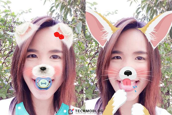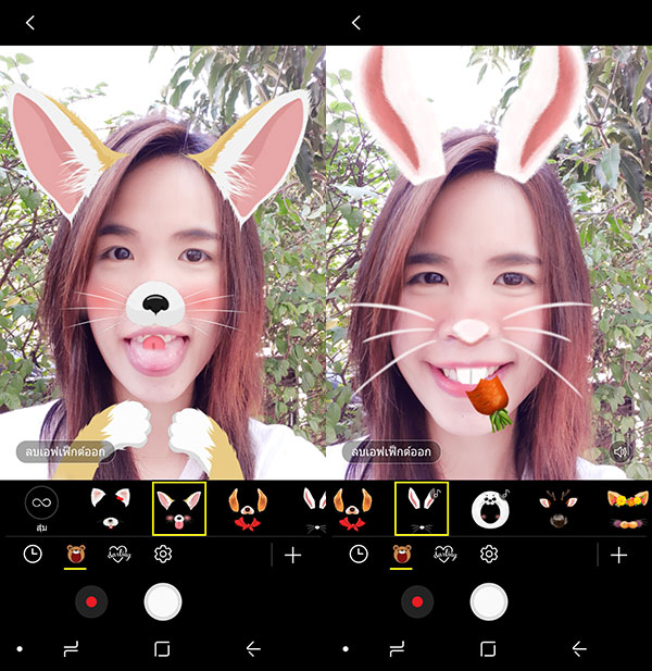 ตัวอย่างภาพถ่ายจากกล้องด้านหน้า (ใส่เอฟเฟกต์สติกเกอร์)
