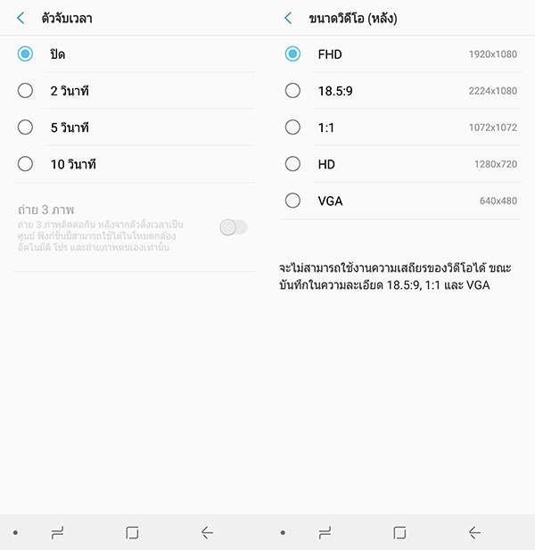 สามารถตั้งเวลาถ่ายภาพได้ สูงสุด 10 วินาที ส่วนการถ่ายวิดีโอนั้น รองรับสูงสุดที่ระดับ Full HD ทั้งกล้องด้านหน้าและกล้องด้านหลัง