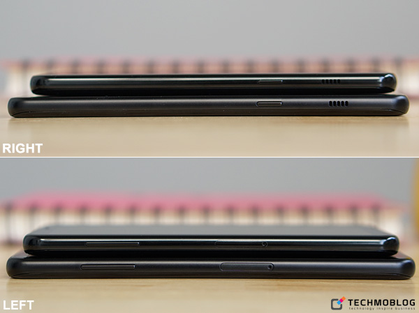 ด้านขวาของตัวเครื่อง ประกอบด้วย ปุ่ม Power สำหรับเปิด-ปิดตัวเครื่อง หรือล็อกหน้าจอแสดงผล และลำโพงเสียง ส่วนด้านซ้ายของตัวเครื่อง เป็นปุ่มปรับระดับเสียง และถาดใส่ซิมการ์ดที่ 1 แบบ nanoSIM