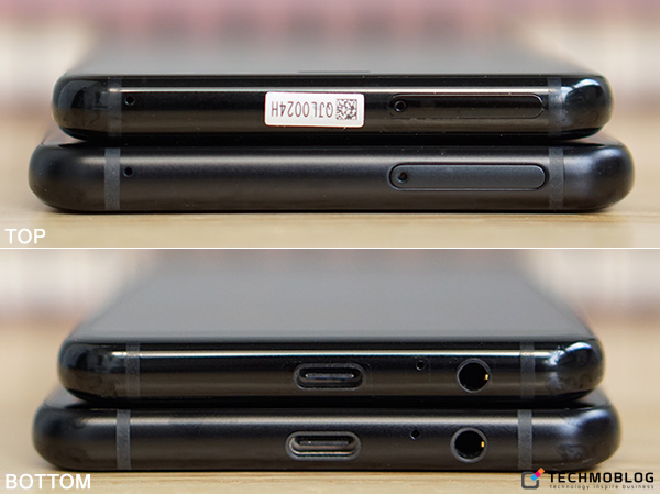 ด้านบนของตัวเครื่อง ประกอบด้วย ไมโครโฟนตัวที่สองสำหรับตัดเสียงรบกวนรอบข้าง, ถาดใส่ซิมการ์ดที่ 2 แบบ nanoSIM และ microSD Card ส่วนด้านล่างของตัวเครื่อง ประกอบด้วย พอร์ต USB-C, ไมโครโฟนตัวหลักสำหรับสนทนา และช่องหูฟังขนาดมาตรฐาน 3.5 มิลลิเมตร