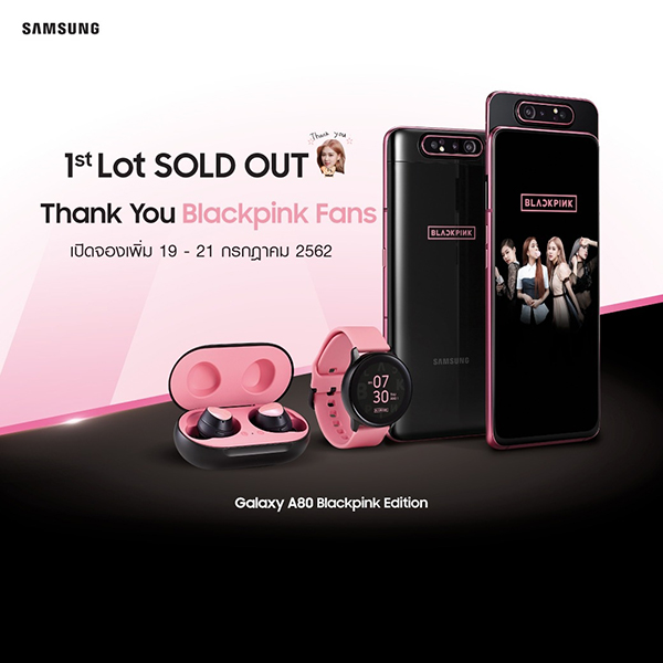 กรุงเทพฯ (18 กรกฎาคม 2562) – ซัมซุง ทนกระแสเรียกร้องจากเหล่าบลิ๊งค์ไม่ไหว! เพิ่มจำนวนและขยายเวลาจอง “GalaxyA80 I Watch Active I Buds Blackpink Edition” เซ็ตพิเศษเอาใจแฟนคลับตัวจริงของ 4 สาววงแบล็กพิ้งก์ หลังจากล๊อตแรกถูกจองหมดภายในเวลาไม่นาน