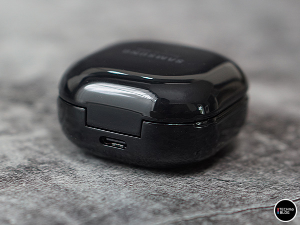 เคสชาร์จของหูฟังไร้สาย Galaxy Buds Live จะมาพร้อมกับดีไซน์รูปทรงสี่เหลี่ยมจัดุรัส ขนาดอยู่ที่ 50 x 50.2 x 27.8 มม. ด้านบนมีโลโก้ Samsung และคำว่า Sound by AKG โดยผิวสัมผัสของเคสสีดำ Mystic Black นั้น จะเป็นผิวมัน แตกต่างจากสี Mystic Bronze ที่จะมีผิวสัมผัสแบบด้าน ส่วนแบตเตอรี่ของเคสมีขนาดความจุที่ 500 mAh