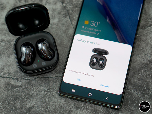 สำหรับใครที่ใช้งานมือถือ Samsung Galaxy อยู่แล้ว การเชื่อมต่อหูฟังไร้สาย Galaxy Buds Live กับอุปกรณ์ ก็เพียงแค่เปิดเคสหูฟัง มือถือ Samsung Galaxy ก็จะขึ้นหน้าต่างให้เชื่อมต่อได้เลย โดยที่ผู้ใช้ไม่จำเป็นต้องเข้าไปเชื่อมต่อเองภายหลัง คล้าย ๆ กับการเชื่อมต่อหูฟัง AirPods / AirPods Pro กับ iPhone นั่นเอง