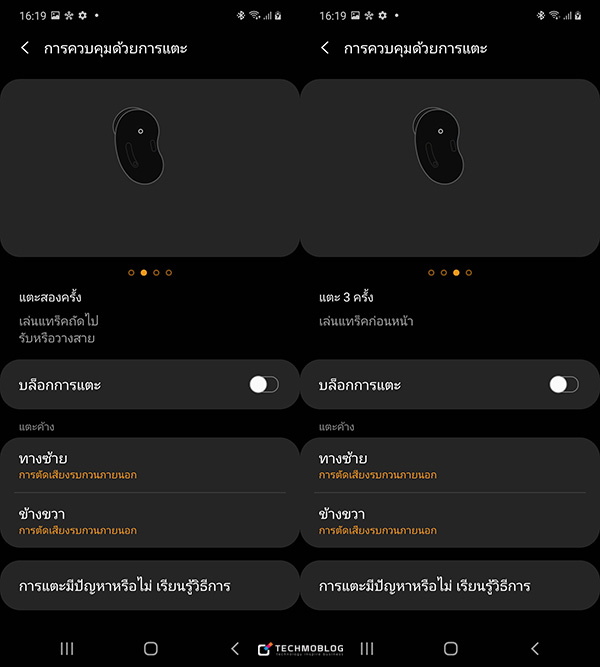 การควบคุมด้วยการแตะที่ตัวหูฟัง สามารถควบคุมการทำงานได้หลากหลายรูปแบบ ไม่ว่าจะเป็น