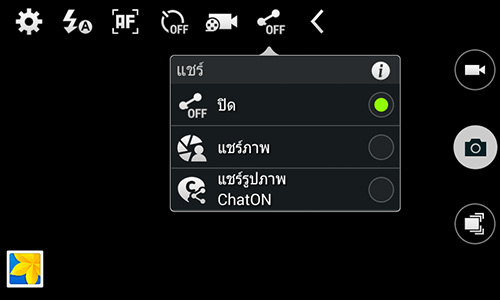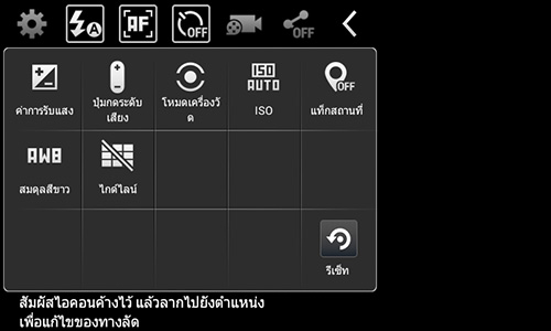 ส่วนการตั้งค่าในส่วนอื่นๆ ก็ได้แก่ ตั้งค่าการรับแสง, ISO, แท็กสถานที่, สมดุลสีขาว, เปิดปิดไฟแฟลช, โหมดโฟกัส, ตั้งเวลาถ่ายภาพ และการแชร์ภาพ