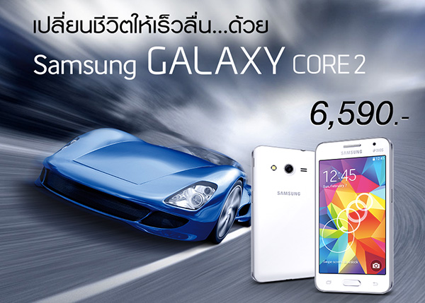 จากข้อมูลข้างต้น จะเห็นได้ว่า Samsung Galaxy Core 2 เป็นสมาร์ทโฟนระดับกลาง ที่สามารถตอบโจทย์การใช้งานได้ทุกด้าน ไม่ว่าจะเป็น คุณสมบัติในการรองรับการใช้งาน 2 ซิมการ์ด, หน่วยประมวลผลแบบ Quad-Core Processor ความเร็ว 1.2 GHz, หน้าจอแสดงผลกว้าง 4.5 นิ้ว, กล้องดิจิตอลด้านหลัง ความละเอียด 5 ล้านพิกเซล และรัน Android 4.4.2 KitKat ตั้งแต่แกะกล่อง ซึ่งสามารถเป็นเจ้าของกันได้ ในราคาเพียง 6,590 บาทเท่านั้น สามารถทดลองใช้งานกันได้ที่ Samsung Shop หรือร้านตัวแทนจำหน่ายใกล้บ้านครับ