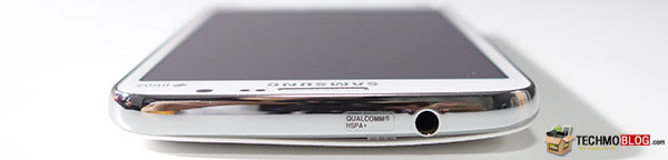 ด้านบนของหน้าจอแสดงผล ประกอบด้วย ลำโพงสำหรับสนทนา, Proximity Sensor ปิดหน้าจอแบบอัตโนมัติขณะสนทนา เพื่อประหยัดพลังงาน, Accelerometer Sensor ช่วยหมุนหรือปรับเปลี่ยนทิศทางการแสดงผลของหน้าจอให้แบบอัตโนมัติ ตามลักษณะการจับถือของผู้ใช้ และกล้องด้านหน้า ความละเอียด 1.9 ล้านพิกเซล นอกจากนี้ ยังมีการระบุคำว่า DUOS เพื่อบ่งบอกว่า รองรับการใช้งาน 2 ซิมการ์ด นั่นเอง