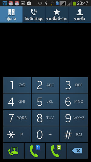 ในส่วนของหน้าการใช้งานโทรศัพท์ มีอินเทอร์เฟสที่คุ้นเคยกันดีอยู่แล้ว แต่สำหรับ มือถือ 2 ซิมอย่าง Samsung Galaxy Grand 2 จะเพิ่มการโทรให้เลือกว่า จะโทรออกจากซิมการ์ดที่ 1 หรือ 2