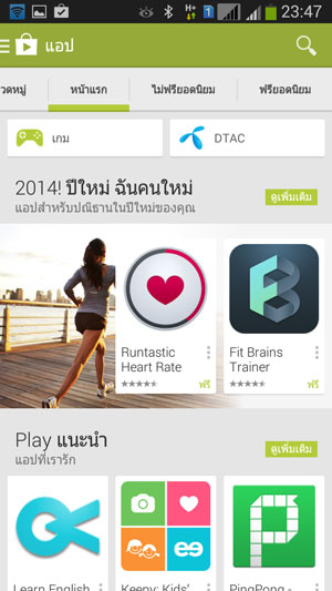 Play Store แหล่งรวมแอพพลิเคชั่นทั่วทุกมุมโลก มีทั้งแบบให้ดาวน์โหลดได้ฟรี และเสียเงิน ซึ่งก่อนเข้าใช้งาน จะต้องล็อกอินก่อนทุกครั้ง
