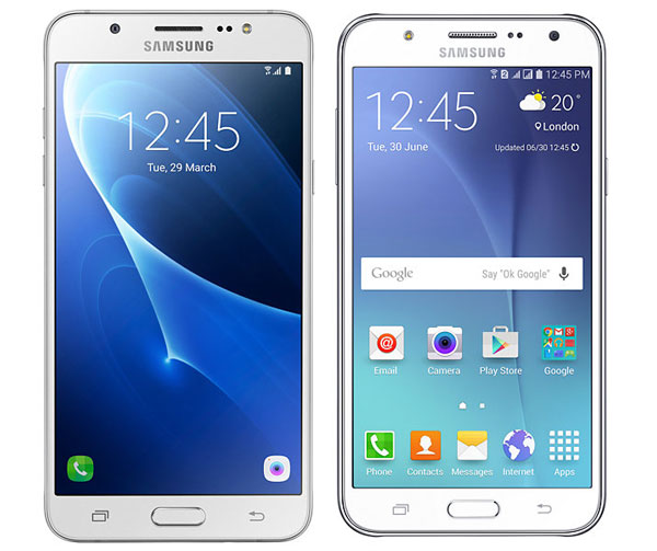 Samsung Galaxy J7 (2016) (ซ้าย) และ Samsung Galaxy J7 (ขวา)