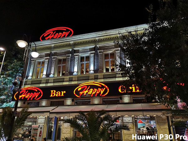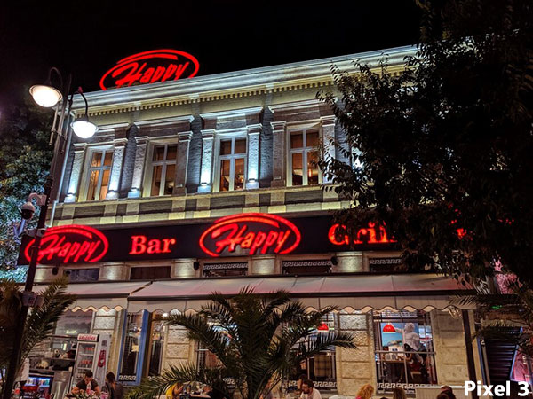 ถัดมาเป็นการถ่ายแสงไฟนีออนในยามค่ำคืนกันบ้าง โดยรุ่นที่ทำผลงานได้ดีที่สุดต้องยกให้ Pixel 3 (9 คะแนน) ที่โดดเด่นทั้งในเรื่องของ Dynamic Range, สีสันของภาพ รวมถึงรายละเอียดของภาพถ่ายที่ทำได้ดีกว่ารุ่นอื่น ตามมาด้วย Samsung Galaxy Note 10+ และ iPhone XS Max ทำได้ 7 คะแนนเท่ากัน ส่วน Huawei P30 Pro กลับจับภาพแสงไฟนีออนได้ด้อยกว่ารุ่นอื่น ได้ไป 5 คะแนน