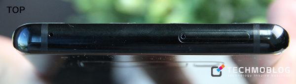 ที่ด้านบนของหน้าจอ ประกอบด้วย ไฟแสดงผลแบบ LED, ลำโพงสำหรับสนทนา, กล้องดิจิทัลความละเอียด 8 ล้านพิกเซล และเซ็นเซอร์สแกนม่านตา Iris Sensor