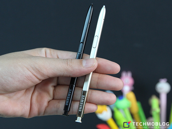 เทียบขนาดปากกา S Pen ของ Samsung Galaxy Note 8 และ Galaxy Note 5 จะเห็นได้ว่า ตัวปากกาของ Galaxy Note 8 นั้น จะมีความยาวที่สั้นกว่าเล็กน้อย ซึ่งช่วยทำให้หยิบจับได้ถนัดมือยิ่งขึ้น