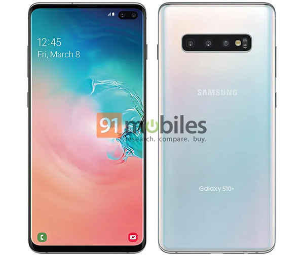 โดยก่อนหน้านั้น มีข่าวลือว่า Samsung Galaxy S10+ นั้น จะมาพร้อมกับกล้องคู่ด้านหน้า และกล้องด้านหลัง 3 ตัว (Triple-Camera) บนดีไซน์หน้าจอเจาะรูแบบ Infinity-O ซึ่งภาพเรนเดอร์ล่าสุดนี้ ก็ไม่น่าพลิกโผแล้ว เพราะทาง 91mobiles ก็มั่นใจว่า Samsung Galaxy S10+ จะมาพร้อมกับกล้องคู่หน้ากับกล้องหลัง 3 ตัวอย่างแน่นอน ซึ่งความน่าสนใจของภาพเรนเดอร์ชุดนี้ก็คือ สีสันตัวเครื่องของ Samsung Galaxy S10+ จะเป็นแบบไล่เฉดสี และสีที่เผยออกมาล่าสุดนี้ก็คือสี Prism White เรียกได้ว่า สวยงามและน่าใช้มากเลยทีเดียว