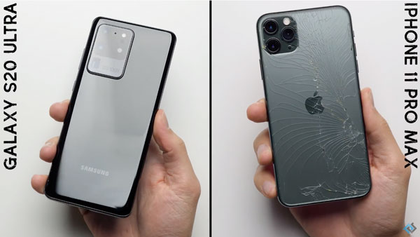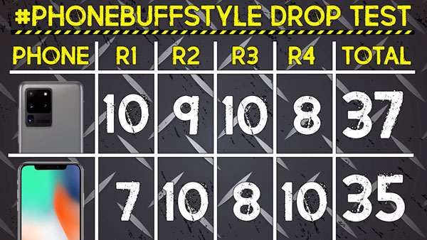 PhoneBuff แชนแนลชื่อดังบน YouTube ได้นำ Samsung Galaxy S20 Ultra มือถือเรือธงรุ่นใหม่ มาทดสอบ Drop Test หรือการทดสอบความแข็งแกร่งของบอดี้ตัวเครื่อง กับคู่แข่งตลอดกาลอย่าง iPhone 11 Pro Max เพื่อเปรียบเทียบว่า รุ่นใดจะแกร่งมากกว่ากัน