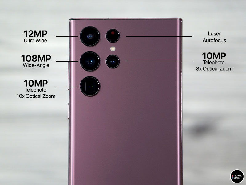 อีกหนึ่งไฮไลท์บน Samsung Galaxy S22 Ultra ก็คือ กล้องถ่ายรูป ที่มาพร้อมกับกล้องด้านหลังมากถึง 4 ตัว ครบทุกช่วงระยะการถ่ายรูป โดยประกอบด้วย กล้องหลัก ความละเอียด 108 ล้านพิกเซล, กล้อง Ultra Wide ความละเอียด 12 ล้านพิกเซล, กล้อง Telephoto ตัวที่ 1 ความละเอียด 10 ล้านพิกเซล (10x Optical Zoom) และกล้อง Telephoto ตัวที่ 2 ความละเอียด 10 ล้านพิกเซล (3x Optical Zoom) อีกทั้งยังสามารถซูมได้ไกลถึง 100 เท่าอีกด้วย