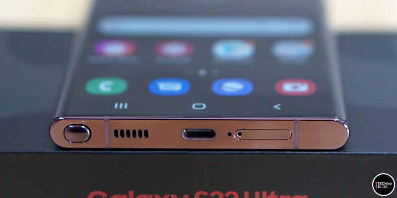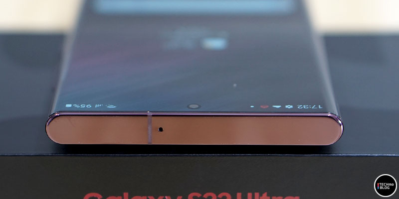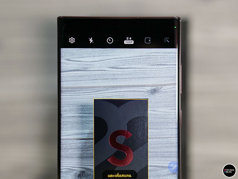 กล้องด้านหน้าของ Samsung Galaxy S22 Ultra มีความละเอียดอยู่ที่ 40 ล้านพิกเซล ส่วนลำโพงเสียงอยู่ตรงขอบตัวเครื่องด้านบน