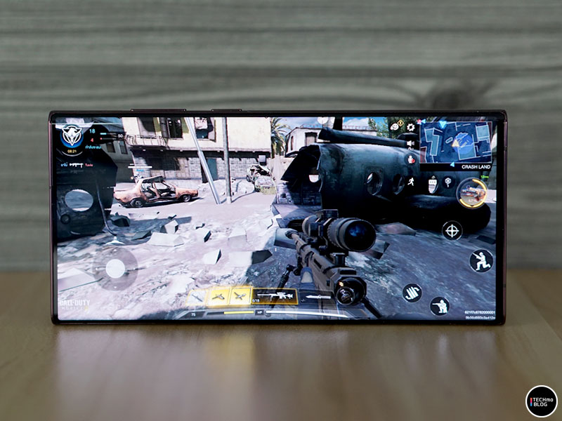 ถัดมาเป็นเกมแข่งรถอย่าง Asphalt 9 กันบ้าง แสดงผลได้เต็มจอขนาด 6.8 นิ้ว ซึ่งได้ผลเช่นเดียวกับเกม Call of Duty แทบไม่เจออาการเกมกระตุกเช่นกัน