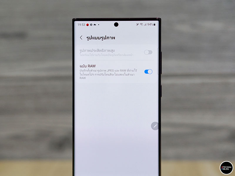 สำหรับโหมดถ่ายภาพแบบ Pro นอกจากจะสามารถปรับตั้งค่าการถ่ายภาพอย่าง ISO, ความเร็วชัตเตอร์, การชดเชยแสง, ระบบโฟกัส และ White Balance ได้แล้ว ยังสามารถเลือกบันทึกภาพแบบ RAW และสามารถนำไปปรับแต่งเพิ่มเติมได้ผ่านแอปพลิเคชัน Expert RAW ซึ่งไฟล์ RAW สามารถแชร์ไปยังสมาร์ทโฟนเครื่องอื่นได้เช่นกัน