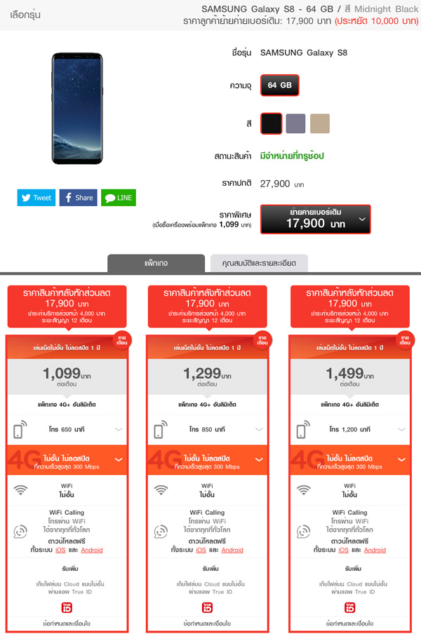 โปรโมชั่น Samsung Galaxy S8 จาก TrueMove H